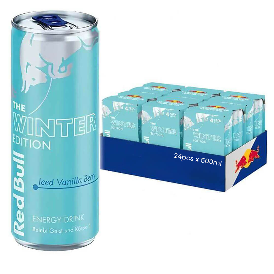 للبيع بالجملة من موقع مارتو الجملة – 24 علبة × 500 مل من ريد بول المستورد Winter Edition بنكهة آيس فانيلا بيري. تحتوي كل علبة على حوالي 114 ملغ كافيين، تورين، وفيتامينات B3، B5، B6، B12، مثالي للرياضيين وأعضاء النوادي. توصيل لجميع الإمارات. استرداد نقدي 5% على جميع مشترياتك من موقع مارتو الجملة.