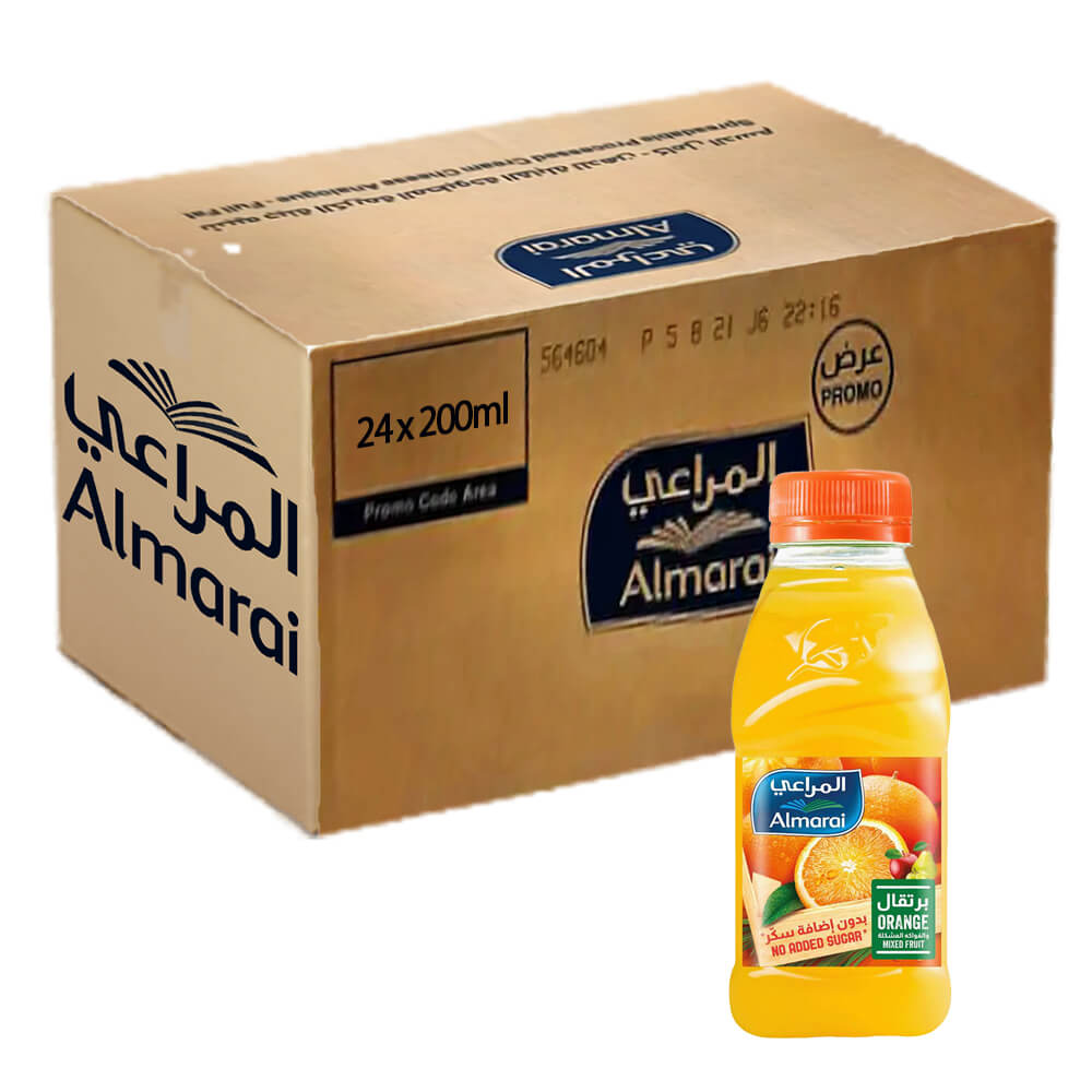 للبيع بالجملة – كرتون عصير برتقال المراعي حجم صغير 24×200 مل؛ عصير طبيعي 100 ٪ بطعم برتقال غني بالفيتامين C ومنعش، خالٍ من الإضافات الصناعية. مناسب للتقديم للعائلة والمدارس او التموين. استرداد نقدي 5 ٪ لجميع مشترياتك عبر موقع مارتو.